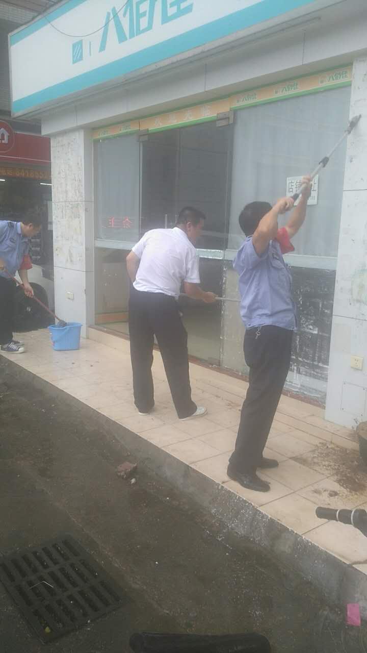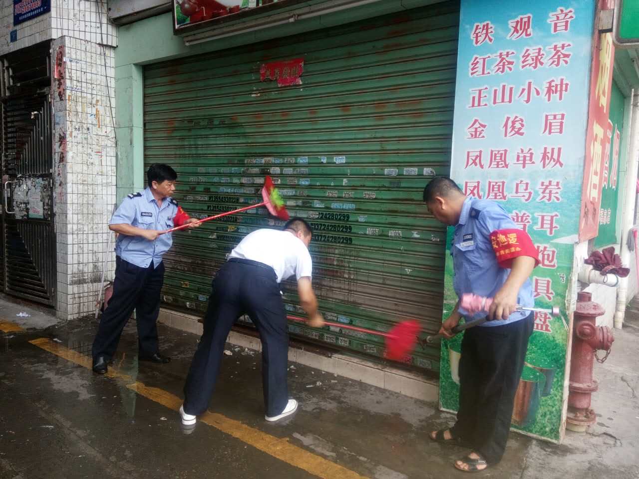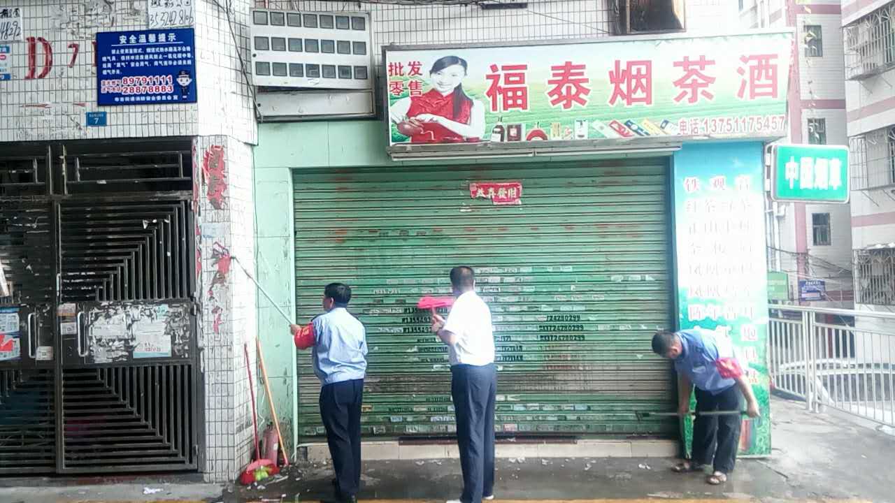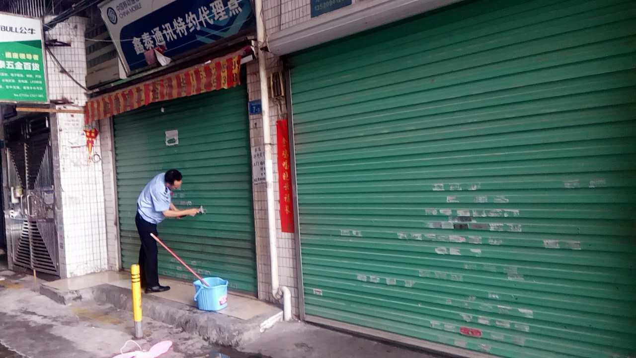 布吉新村物业服务中心保安酷暑下铲除牛皮癣